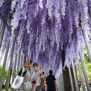 5月22日,在韩国首尔,游客与园艺作品合影。