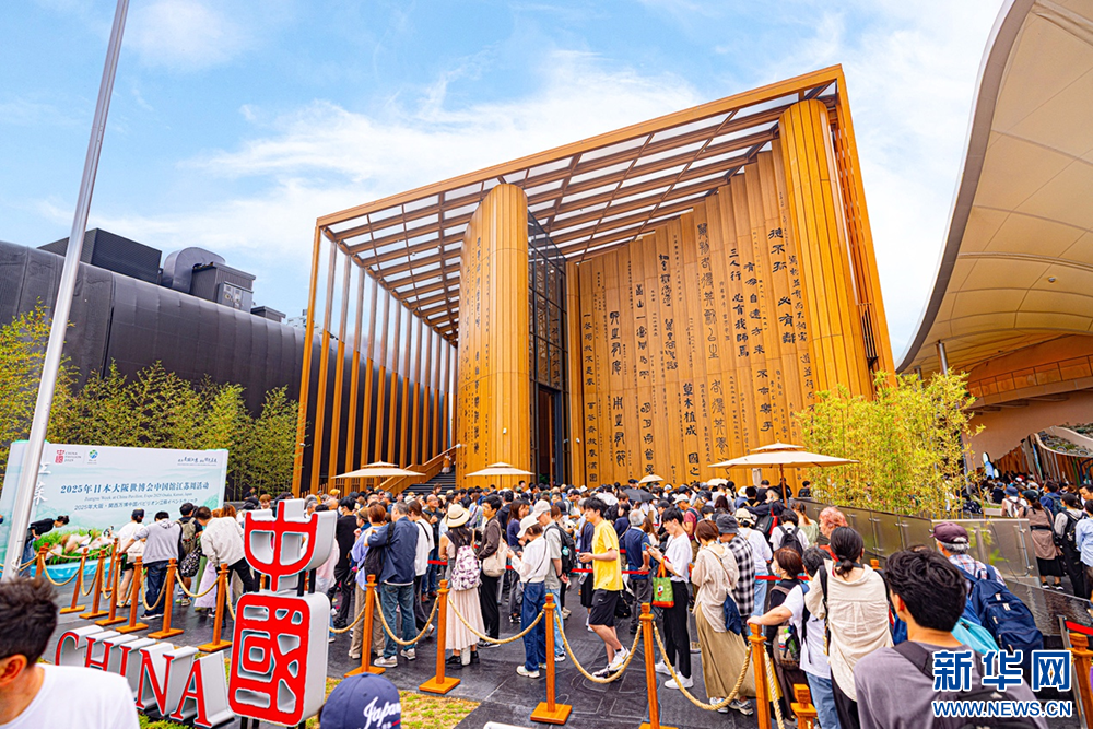 5月21日,游客在排队等待参观中国馆。(活动方供图)