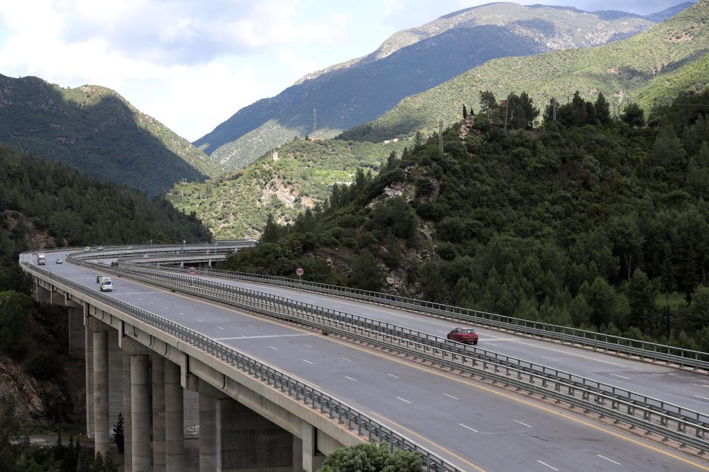 4月21日,在阿尔及利亚北部麦迪亚省,车辆在南北高速公路上行驶。新华社发