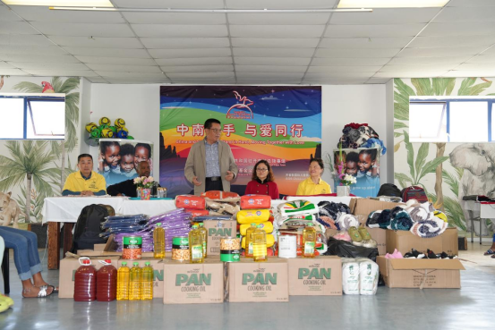 尤文泽和南非宋庆龄基金会会长陈清在捐赠活动上说,希望这些物资能够在即将到来的冬季让孩子们健康成长。