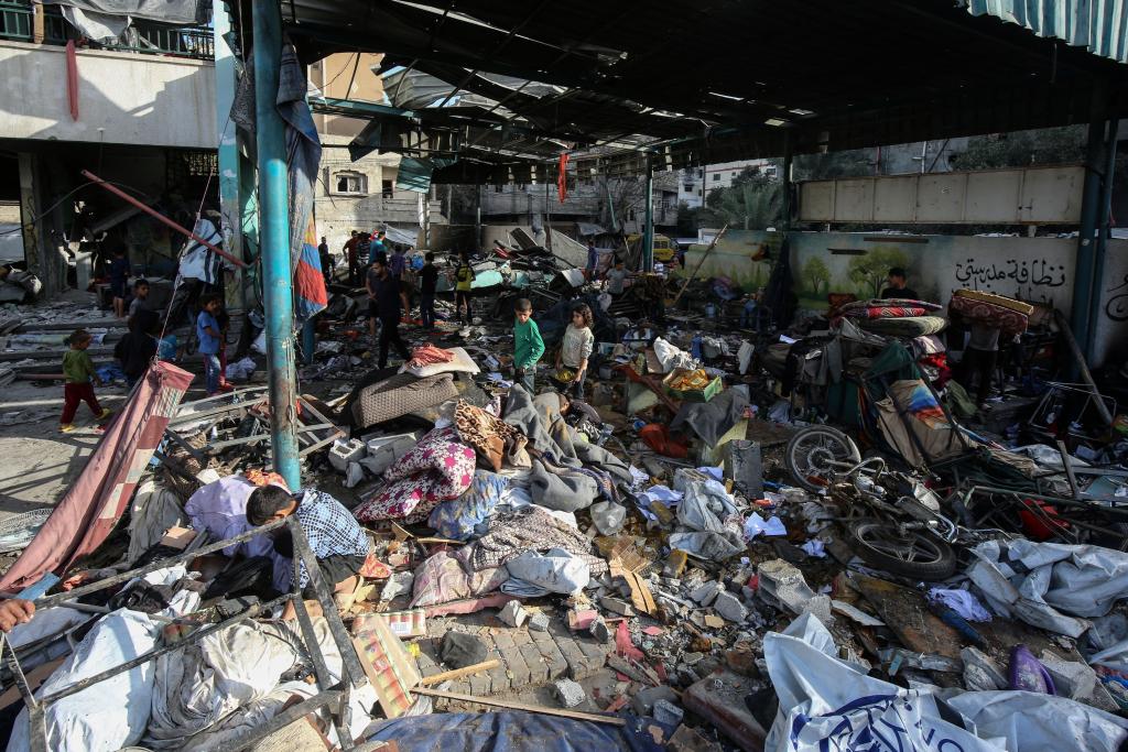 5月26日,人们在加沙城一处以军袭击后的建筑废墟中清理物品。据巴勒斯坦通讯社26日报道,以色列军队当天轰炸加沙地带北部两地,造成至少49名巴勒斯坦人死亡。新华社发(里泽克·阿卜杜勒贾瓦德摄)