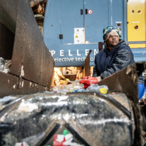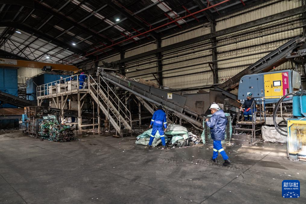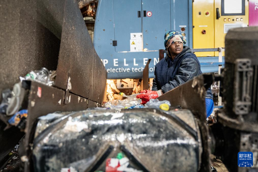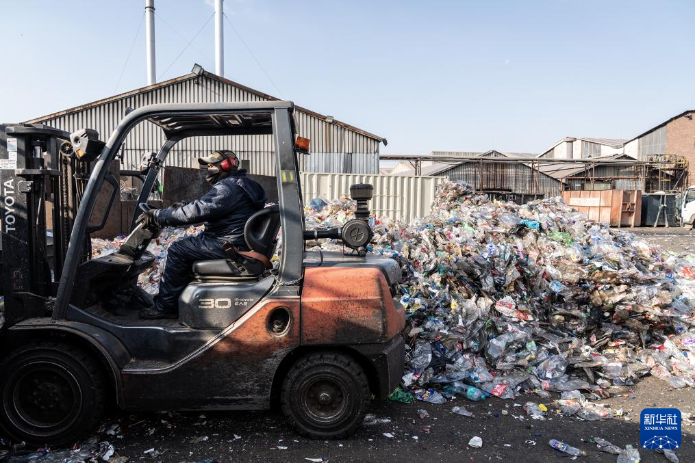 6月5日,工人在南非约翰内斯堡附近的一个塑料回收处理中心内进行操作。