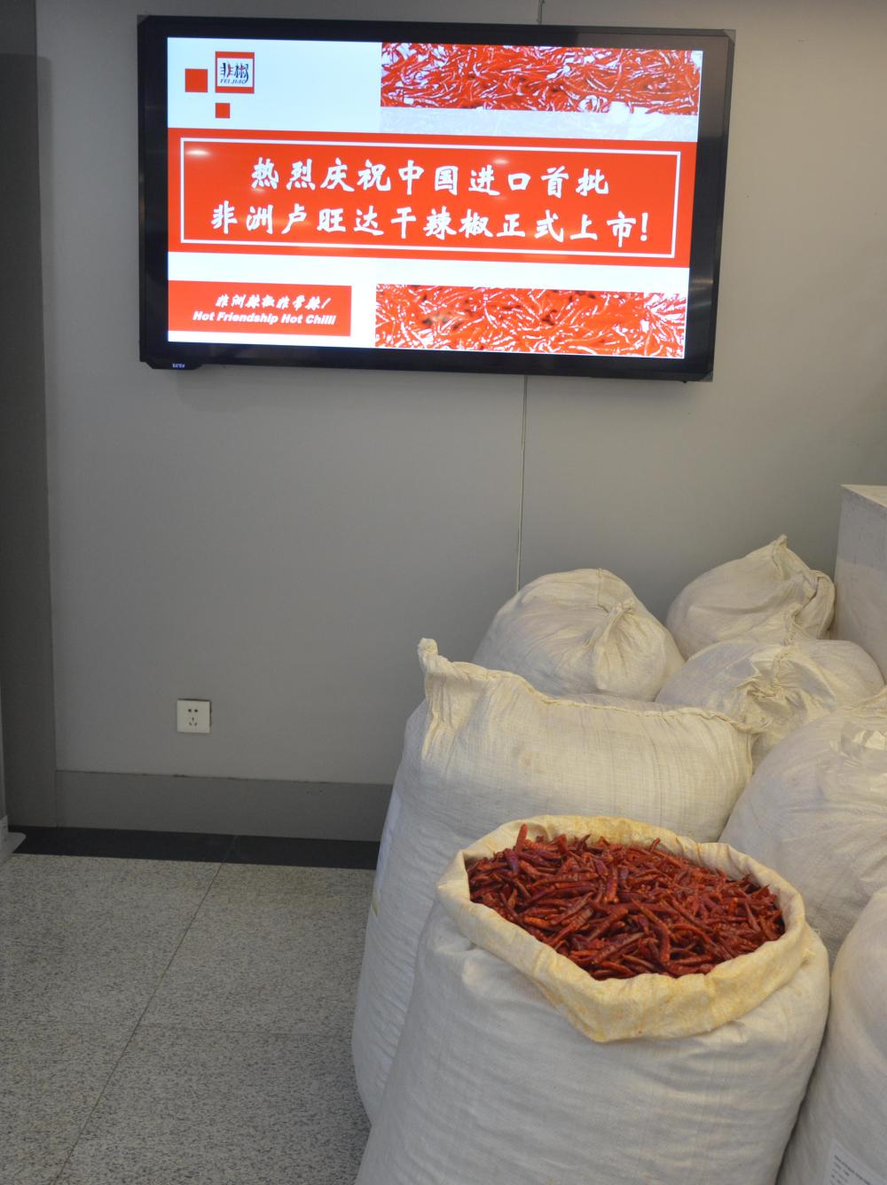 在2019年举行的首届中非经贸博览会上,湖南企业与卢旺达企业达成采购干辣椒的意向,卢方随即向中国提出了干辣椒出口申请。2021年3月,中卢两国政府正式签署干辣椒贸易的双边议定书。同年8月,首批来自卢旺达的干辣椒运抵湖南,卢旺达成为首个向中国出口干辣椒的非洲国家。