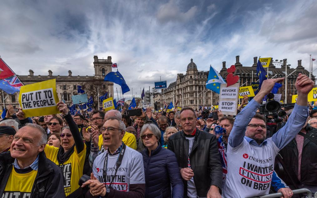 2019年3月23日,人们在伦敦参加游行,支持英国举行“脱欧”二次公投。