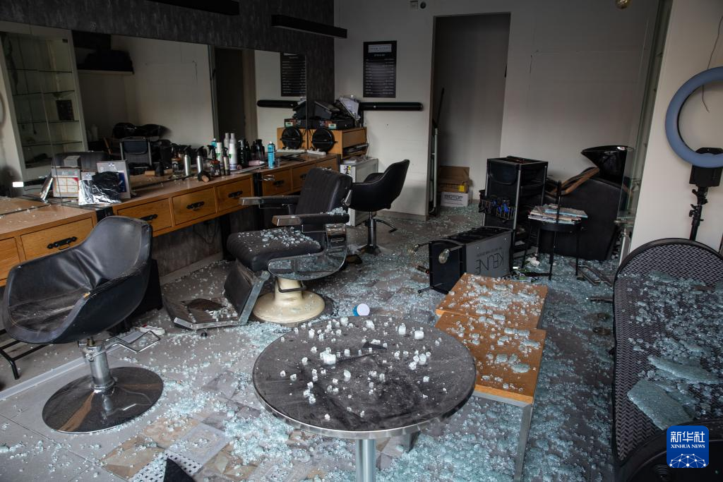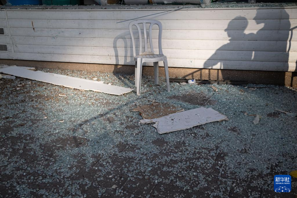 这是6月15日在以色列中部雷霍沃特拍摄的在导弹袭击中受损的理发店外景。