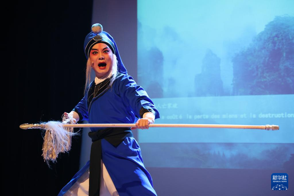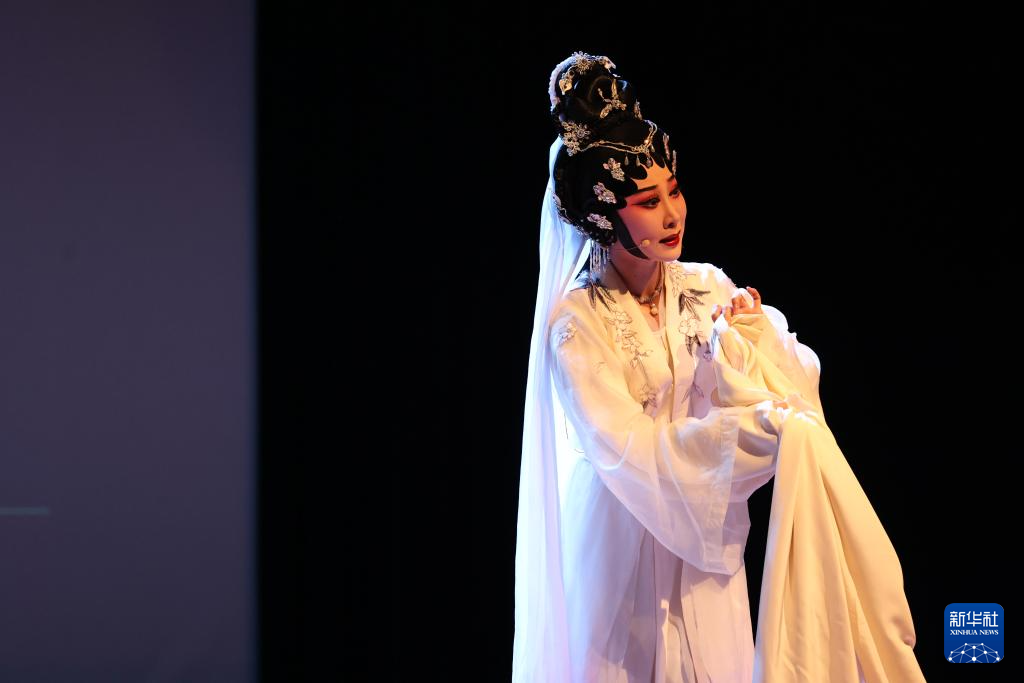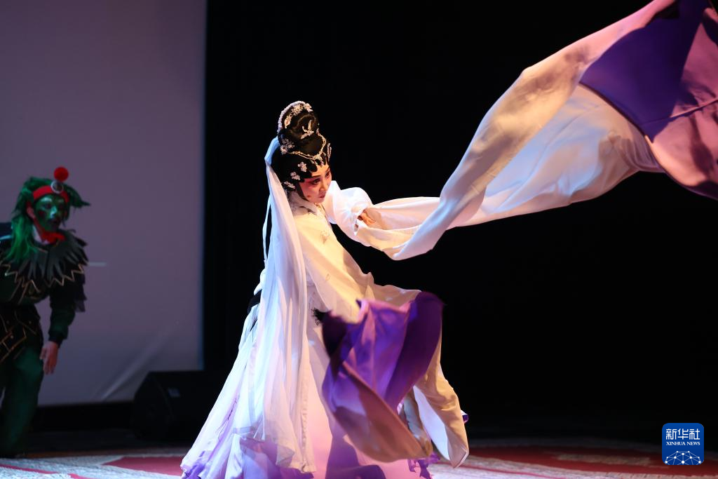 6月19日,在摩洛哥北部城市梅克内斯,广州粤剧院的演员表演粤剧选段。新华社记者 霍晶 摄