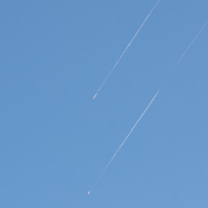 这是6月22日在耶路撒冷上空拍摄到的导弹痕迹。新华社记者 陈君清 摄
