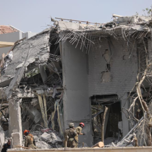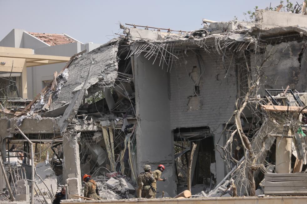 这是6月22日在以色列中部内斯齐约纳拍摄的在导弹袭击中被毁的建筑。新华社发(贾马尔·阿瓦德摄)