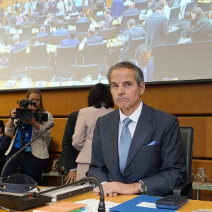 6月23日,在奥地利维也纳,国际原子能机构总干事格罗西出席国际原子能机构理事会召开的伊朗问题紧急会议。