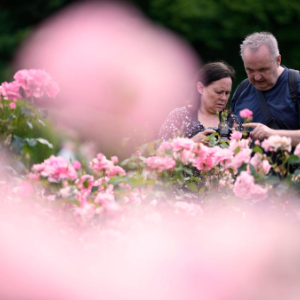 6月30日,在波兰首都华沙,游客在斯卡雷谢夫斯基公园内拍摄盛开的鲜花。