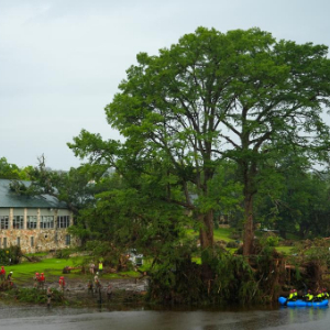 7月6日,在美国得克萨斯州亨特,救援人员在受灾地区工作。新华社/美联