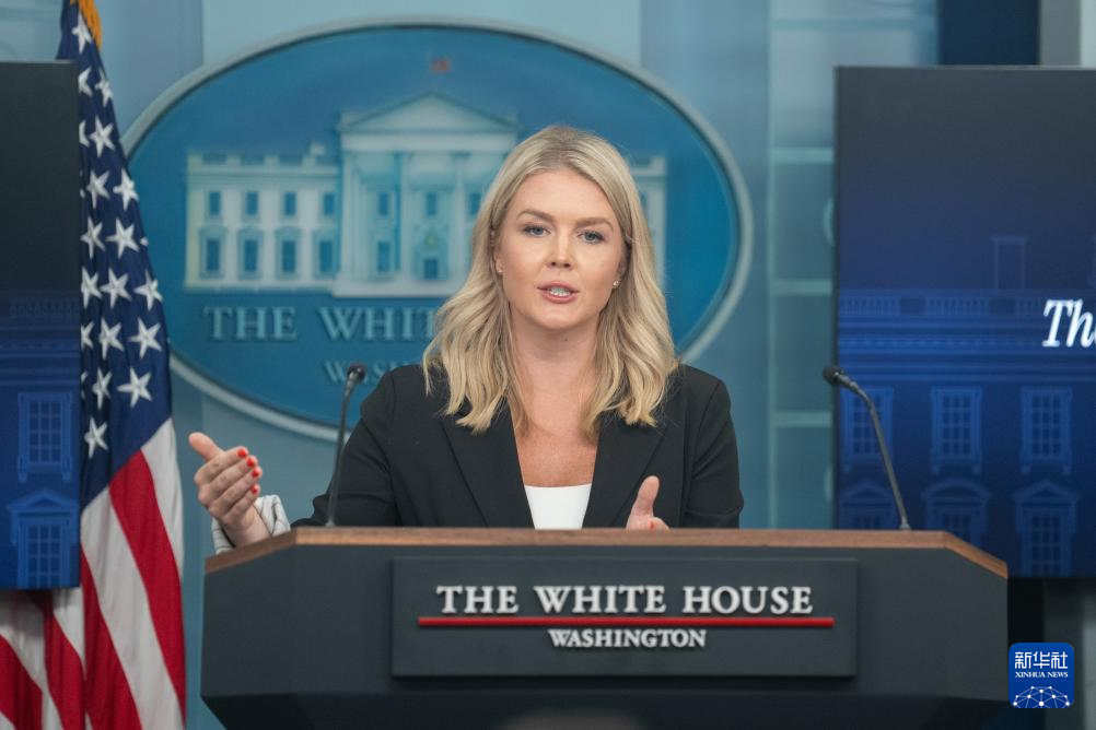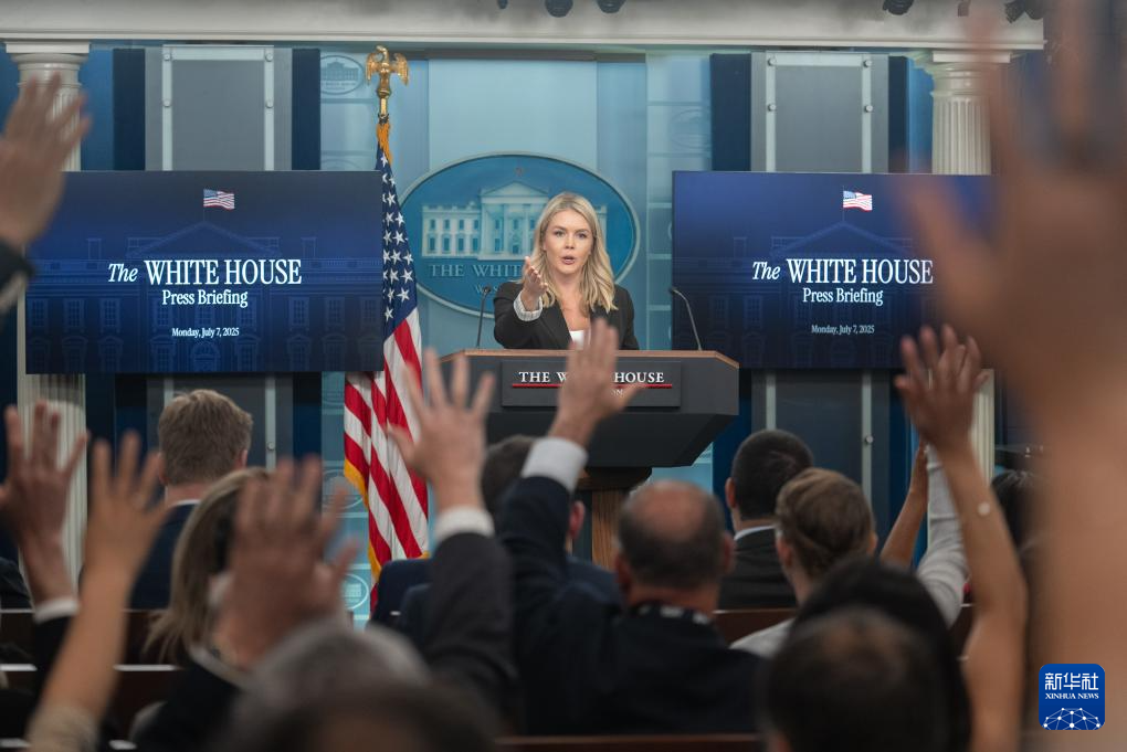 7月7日,在美国首都华盛顿白宫,白宫新闻发言人卡罗琳·莱维特出席记者会。新华社记者 胡友松 摄