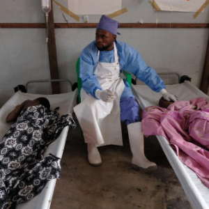 7月10日,在刚果(金)首都金沙萨市郊的一座霍乱治疗中心,医护人员对病患进行治疗。