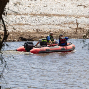 7月11日,救援人员在美国得克萨斯州亨特镇瓜达卢普河上搜寻遇难者。