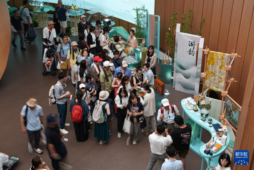 当天,中国馆内设有多个展示和体验区域。大师精品区汇集多位中国国家级、省级手工艺大师的代表作品;江南生活体验区展示了知名品牌的创新产品;互动体验区提供宋代点茶、杭绣技艺展示、中药香囊制作等活动,吸引众多观众参与。