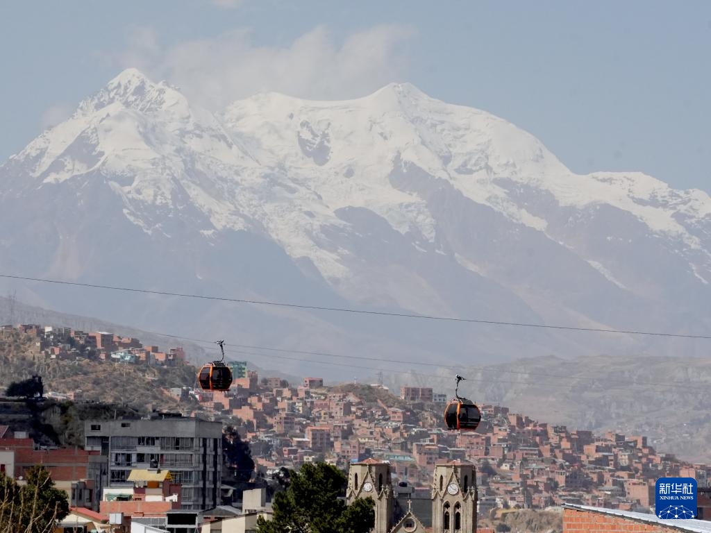 7月15日,缆车在玻利维亚拉巴斯城市上空穿梭。新华社发(哈维尔·马马尼摄)