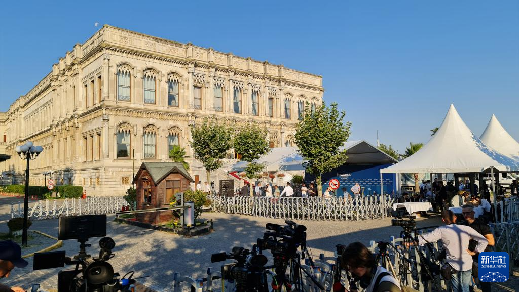 7月23日,在土耳其伊斯坦布尔,记者等候在俄乌第三轮直接谈判会场外(手机照片)。