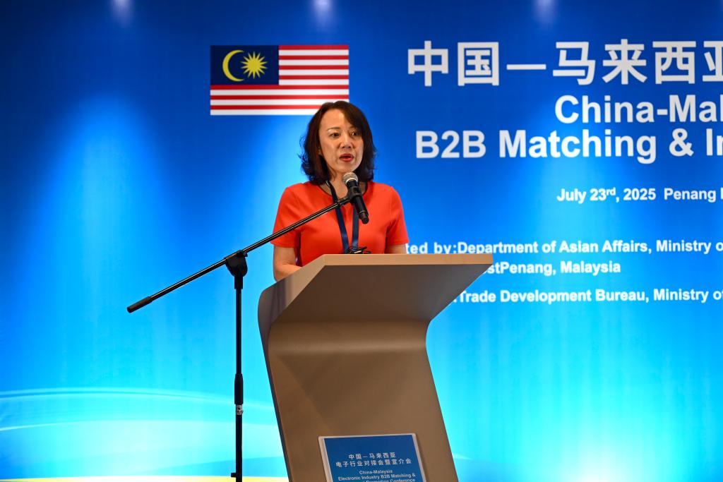 7月23日,在马来西亚槟城,槟城招商局首席执行官吕丽莲在中国-马来西亚电子行业对接会暨宣介会上致辞。