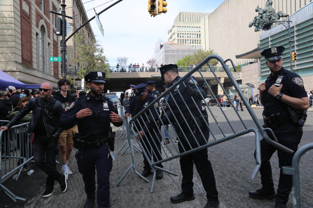 4月30日,警察在美国纽约哥伦比亚大学外放置栅栏。新华社记者刘亚南摄