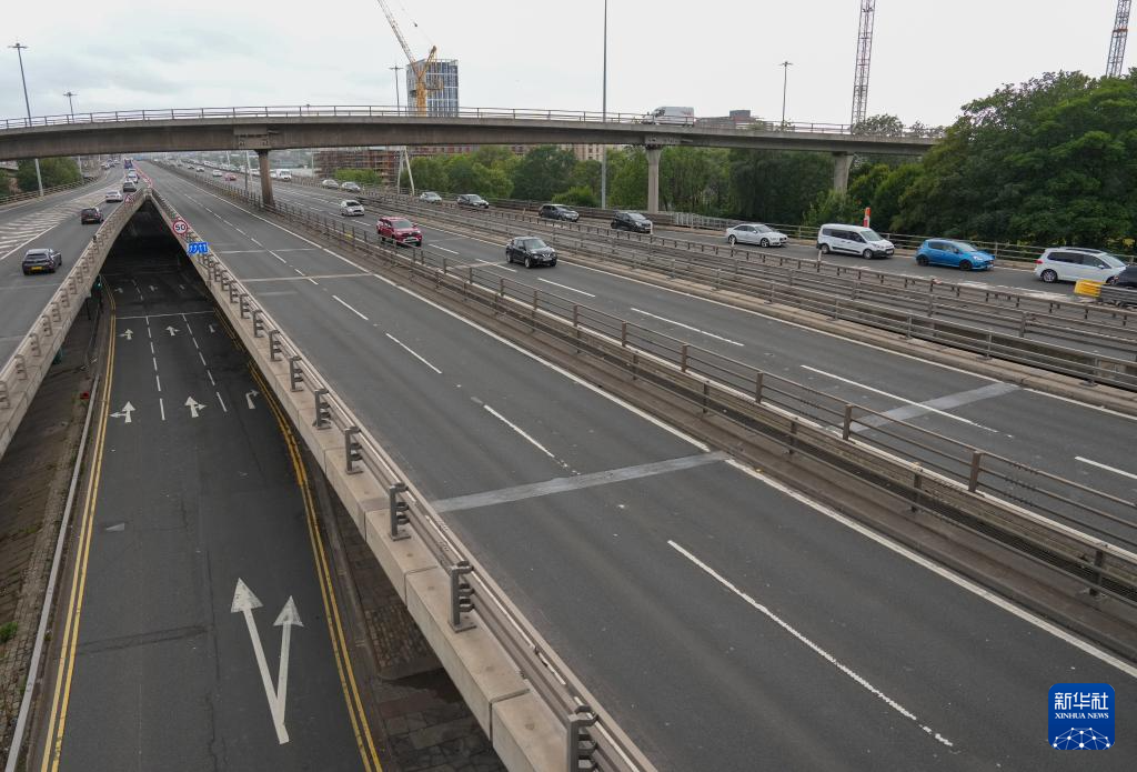 8月4日,在英国格拉斯哥,受“弗洛里斯”风暴影响,向西方向的M8高速公路已关闭。新华社发(斯图尔特·华莱士摄)
