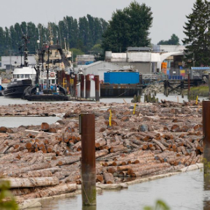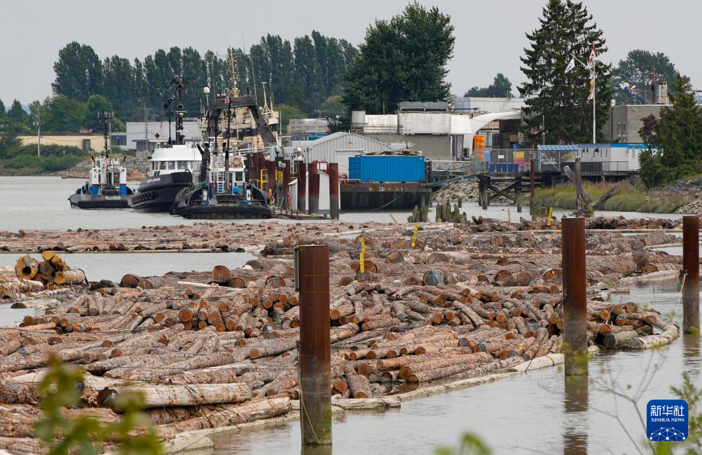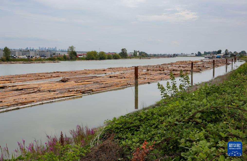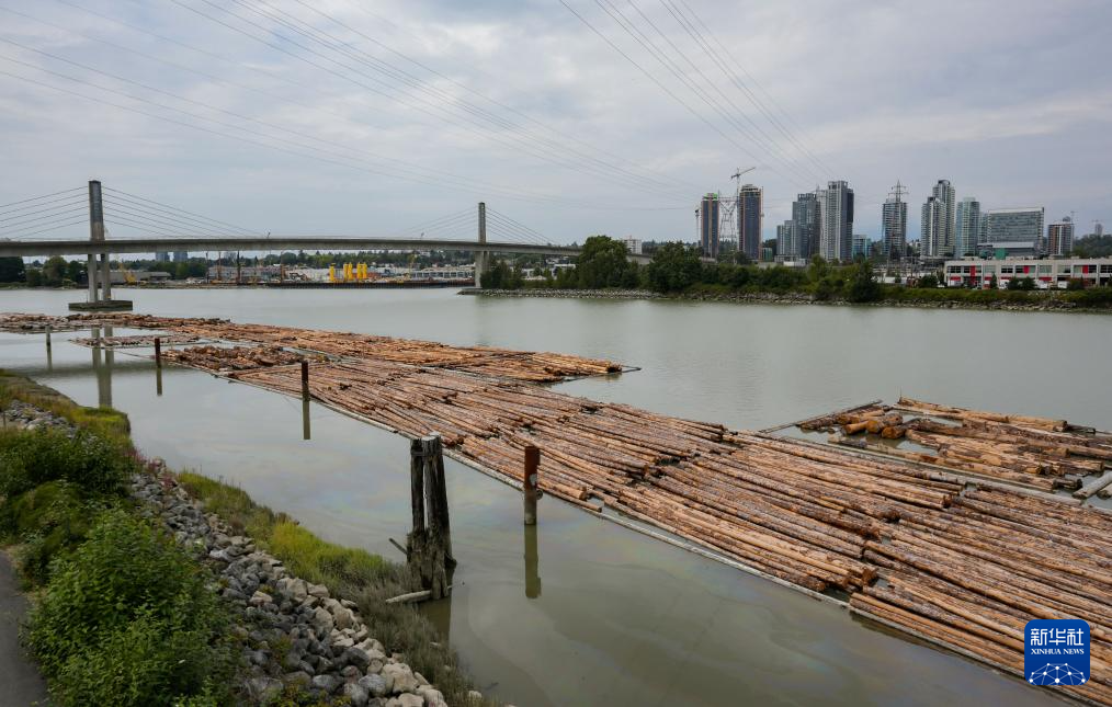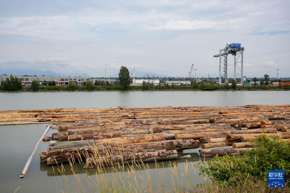 这是8月5日在加拿大里士满拍摄的弗雷泽河上的木材。