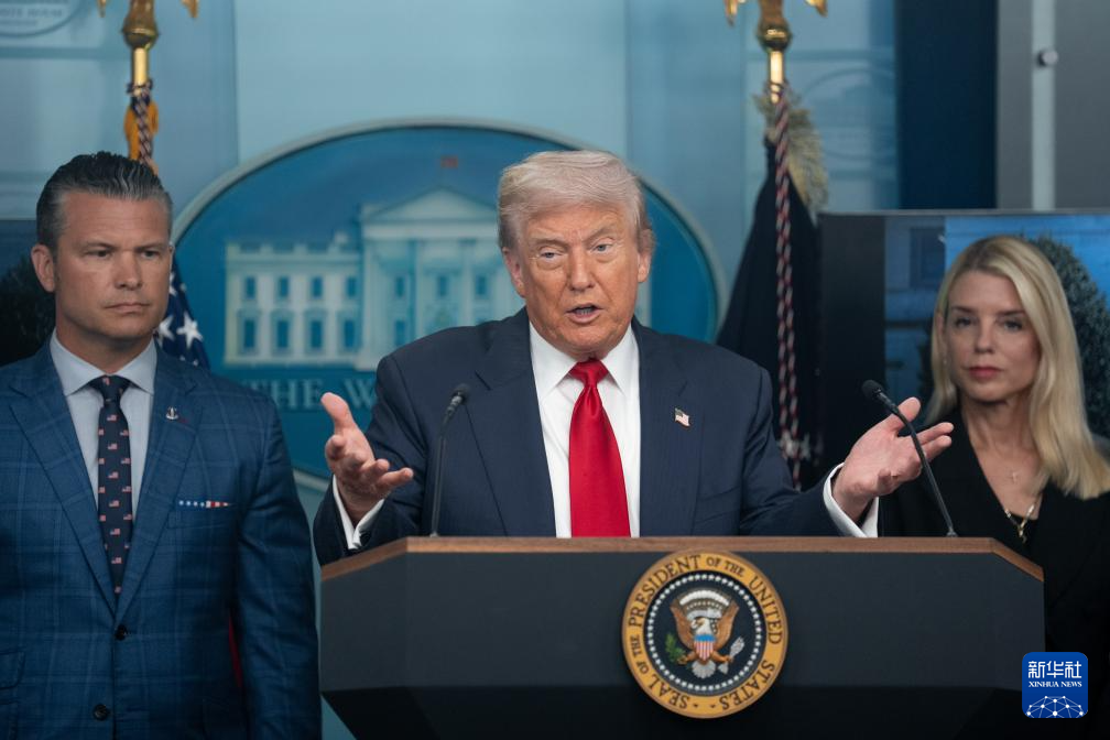 8月11日,美国总统特朗普(中)在华盛顿白宫出席新闻发布会。新华社记者 胡友松 摄
