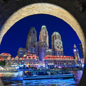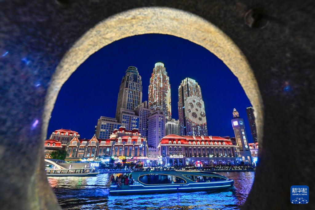 8月25日晚,市民游客乘船在天津海河上欣赏城市夜景。