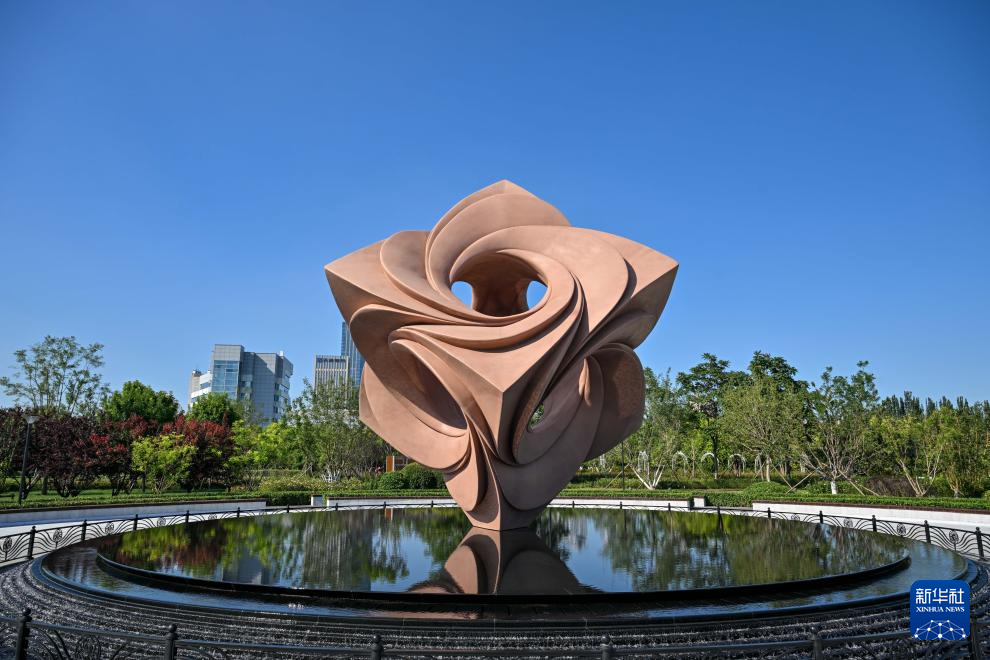 这是8月25日在天津市河西区一街角公园拍摄的“友谊之花”雕塑。