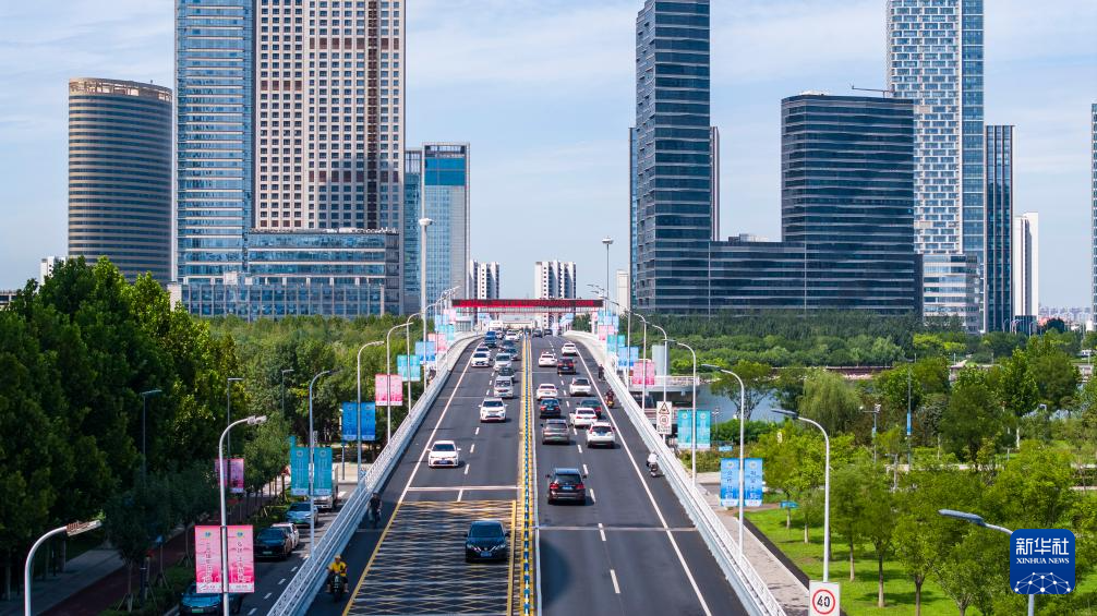 这是在天津北安桥拍摄的城市街景(8月22日摄)。
