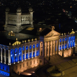 8月25日,乌拉圭在位于首都蒙得维的亚的立法宫举行音乐会,纪念宣告独立200周年。音乐会后,立法宫亮起彩灯(无人机照片)。