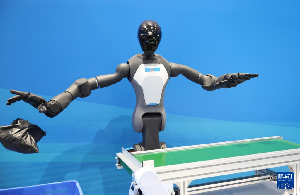 8月29日,在2025年上海合作组织峰会新闻中心,机器人进行智能物流分拣演示。