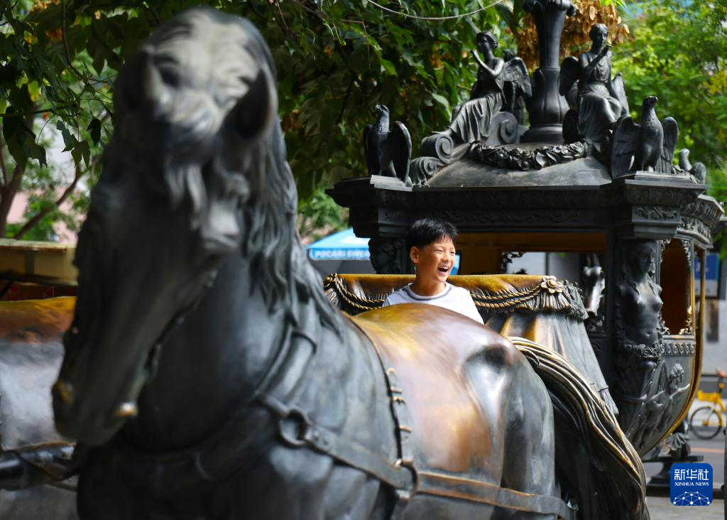 8月29日,小朋友在天津市五大道文化旅游区玩耍。