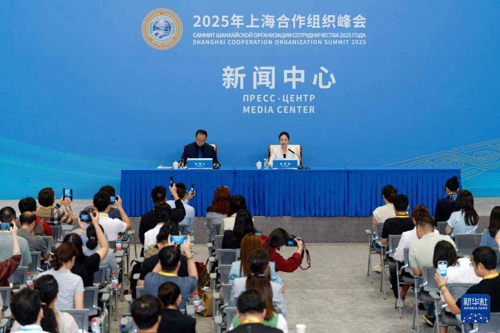 8月30日,在天津梅江国际会展中心,2025年上海合作组织峰会新闻中心举行上合组织睦邻友好合作委员会吹风会,上海合作组织睦邻友好合作委员会秘书长左洪波介绍该组织民间交往与合作,以及睦委会推进该组织民间外交工作情况,并回答记者提问。这是记者在吹风会现场采访。