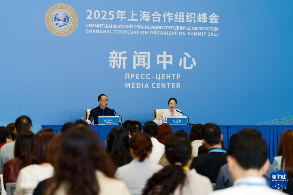 8月30日,在天津梅江国际会展中心,2025年上海合作组织峰会新闻中心举行上合组织睦邻友好合作委员会吹风会,上海合作组织睦邻友好合作委员会秘书长左洪波介绍该组织民间交往与合作,以及睦委会推进该组织民间外交工作情况,并回答记者提问。