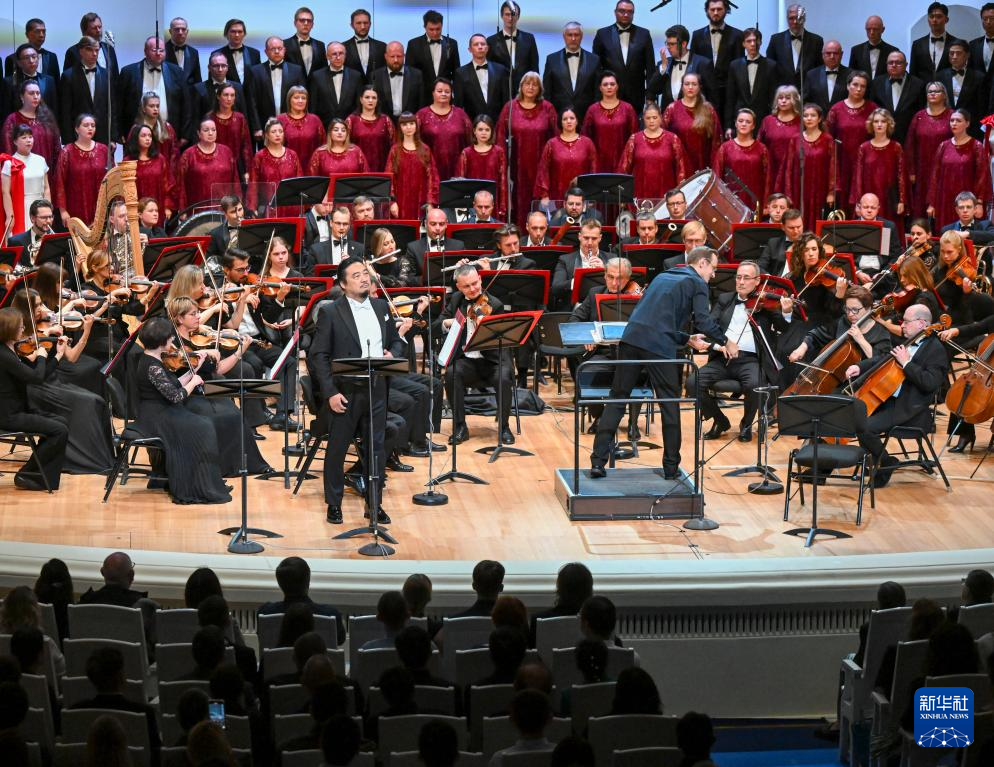 这是9月3日在俄罗斯莫斯科柴可夫斯基音乐厅拍摄的《黄河大合唱》音乐会现场。新华社记者 郝建伟 摄