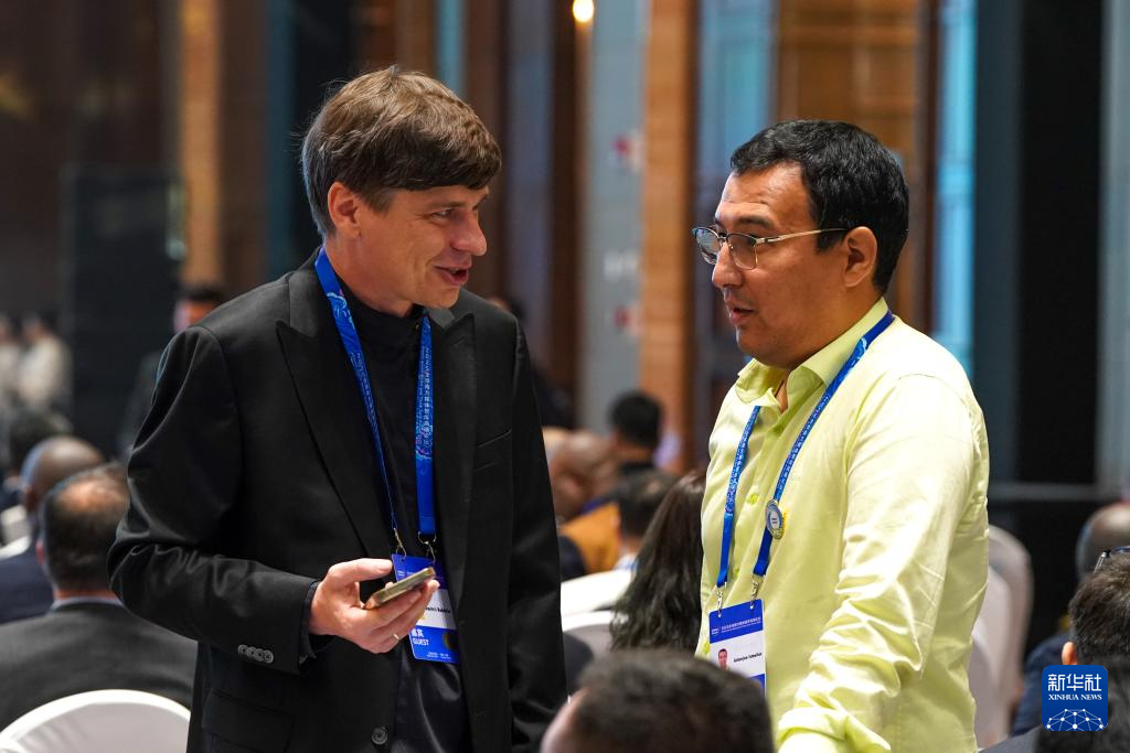 9月6日,出席2025全球南方媒体智库高端论坛的代表在开幕式现场交谈。