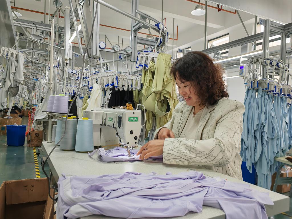 5月13日,云南省昭通市镇雄县居民在当地服装厂工作。(新华社记者 林碧锋 摄)