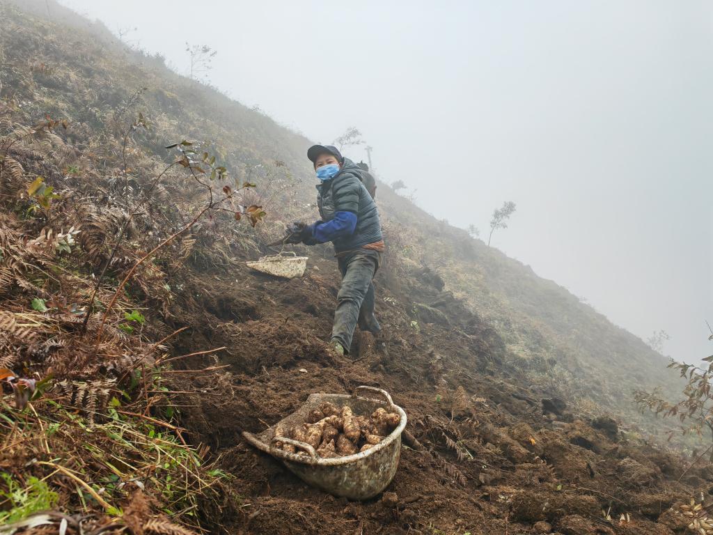 1月4日,云南省昭通市彝良县荞山镇的村民在采收天麻。(新华社记者 林碧锋 摄)