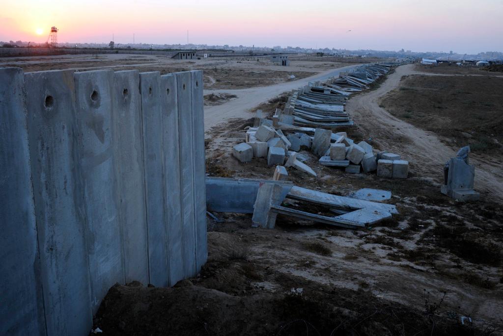 这是2008年6月18日在加沙南部的拉法口岸拍摄的被哈马斯炸毁的隔离墙。新华社记者郭磊摄