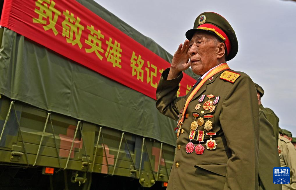 9月12日,第十二批在韩中国人民志愿军烈士遗骸回国。这是志愿军老战士在沈阳桃仙国际机场举行的迎回仪式上敬礼。