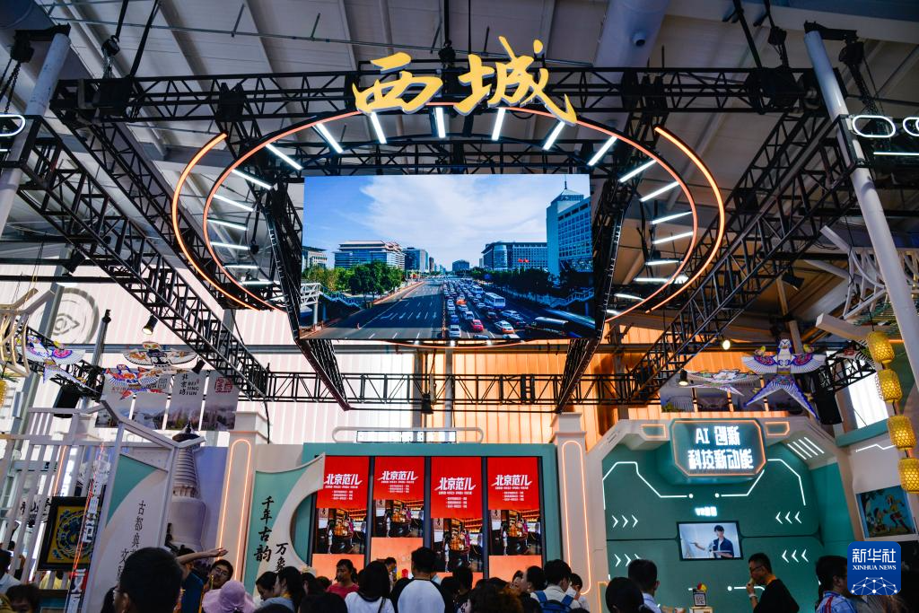 9月13日,在北京首钢园拍摄的2025年服贸会文旅服务展馆西城区展台。