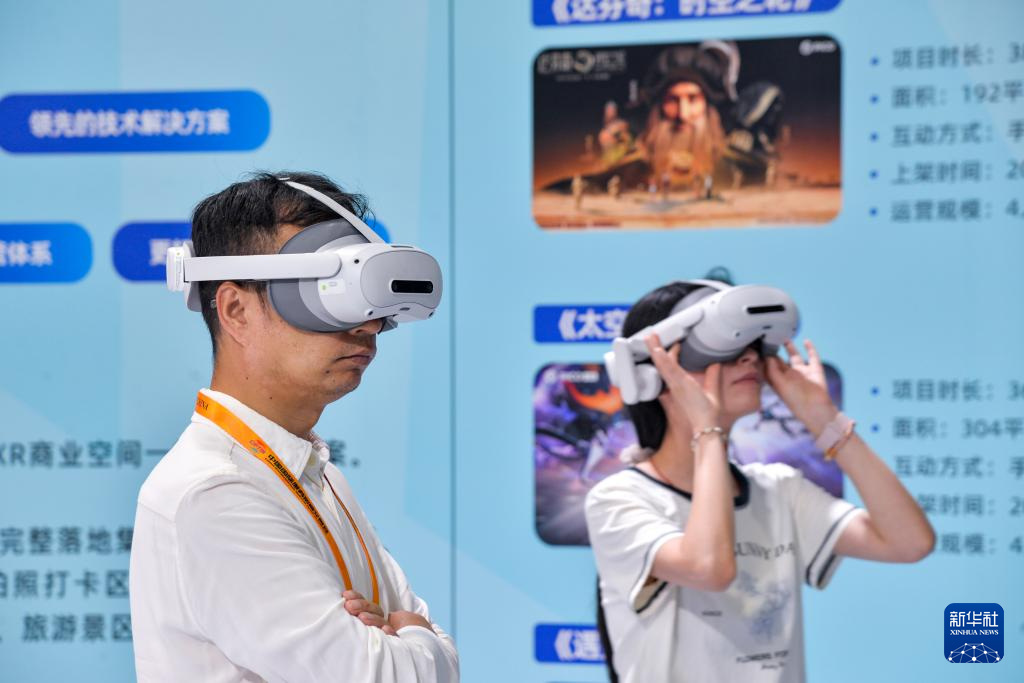 9月12日,在北京首钢园,参展者在2025年服贸会文旅服务展馆北京市广电局展台体验虚拟现实数智化文商旅解决方案。