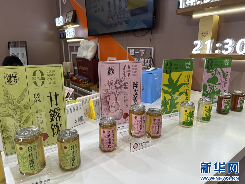 9月9日,北京同仁堂展台上展出的多款新研发饮品。新华网记者 邱虹摄