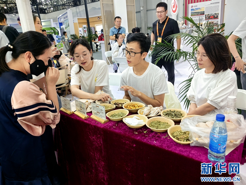 在健康卫生服务专题展区,多家中医医院和中医药企业带来丰富展品,既有各类中药材实物展示,也有以中草药为原料开发的创新饮品与健康零食,吸引了大量观众驻足了解和品尝。