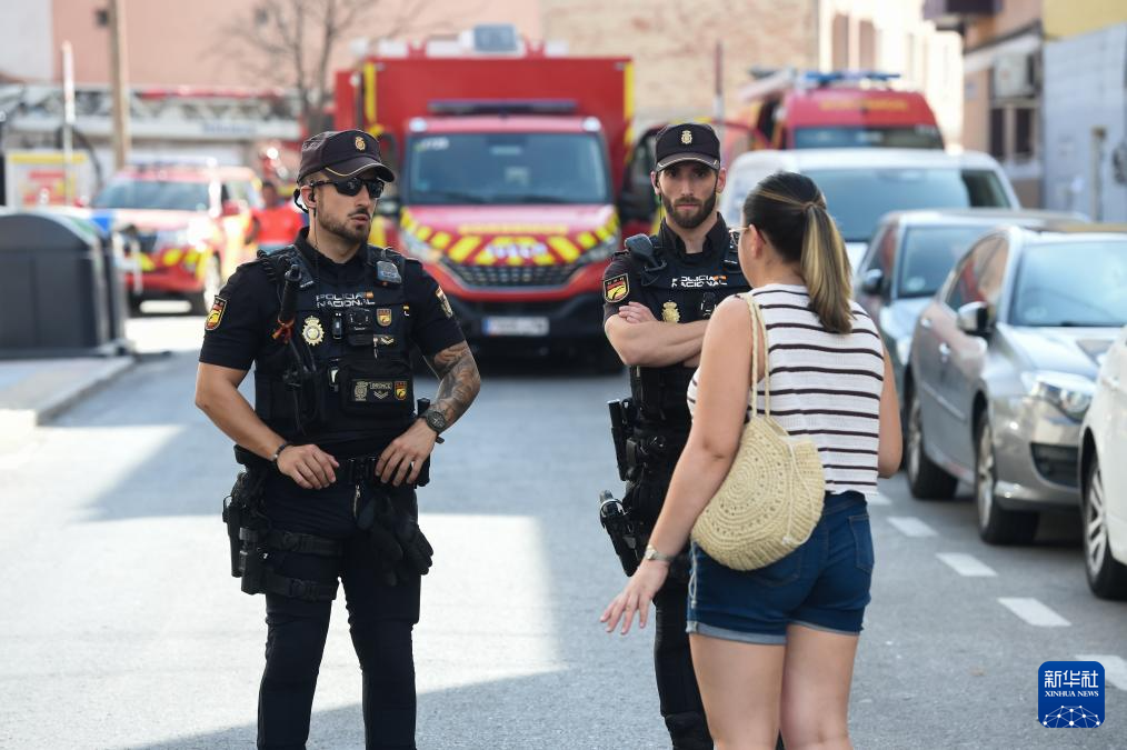 9月13日,在西班牙马德里,警方在爆炸现场附近执勤。新华社发(古斯塔沃·巴连特摄)