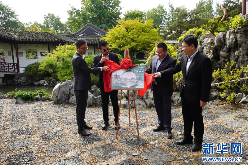 本次图片展内容丰富多元,涵盖逸园与拙政园从缔结“姐妹园”到续约的历史对比照片、复刻的拙政园名家书法楹联、苏州园林特色花窗(含AR互动功能,展示拙政园明瓦花窗修复成果)、按1:1比例复刻的拙政园“嘉实亭”,同时还展示了苏州9座世界文化遗产园林的相关文创产品素材。