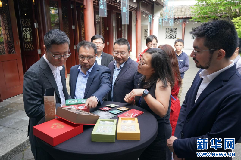 图为开幕式当天,嘉宾观看苏州园林文创艺术品。万斌 摄
