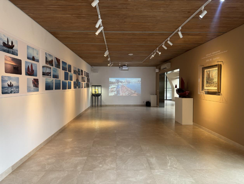 “福宁号”是目前世界上可用于航海的最大仿古福船,于2019年在福建宁德建成下水,2024年年初从广州出发,沿海上丝绸之路抵达新加坡。展览展出了“福宁号”模型,并播放呈现其建造过程的纪录片。该纪录片制片人、展览策展人之一叶小玉向观众介绍了红木选材的难度、传统造船工艺的传承情况,以及纪录片拍摄的细节。