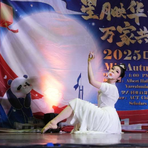 9月14日,在澳大利亚堪培拉,中国留学生在晚会上表演舞蹈。