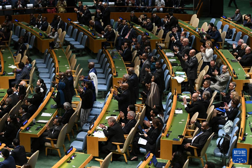 9月22日,在位于纽约的联合国总部举行的和平解决巴勒斯坦问题和落实“两国方案”高级别国际会议上,巴勒斯坦代表为与会领导人发言鼓掌。